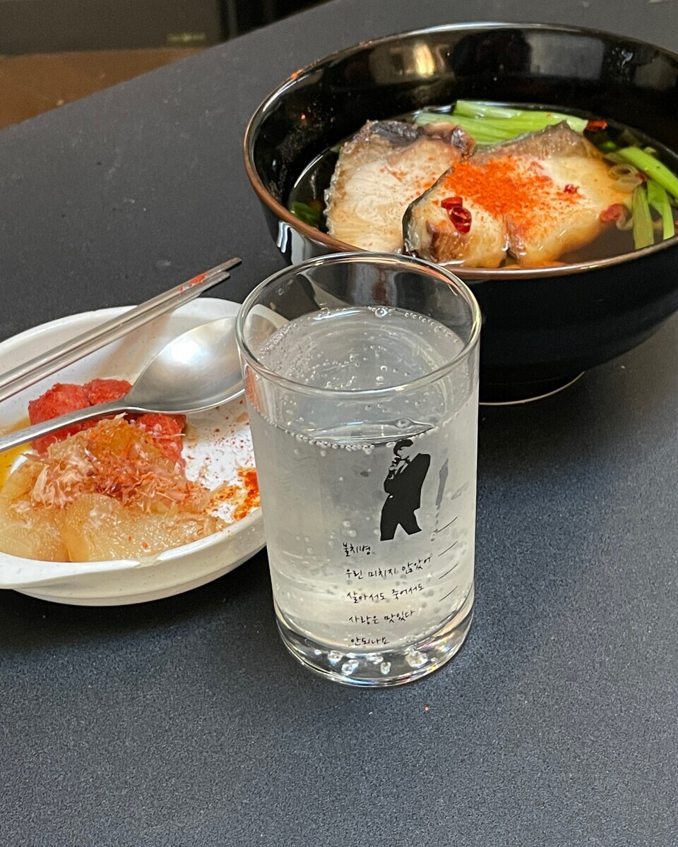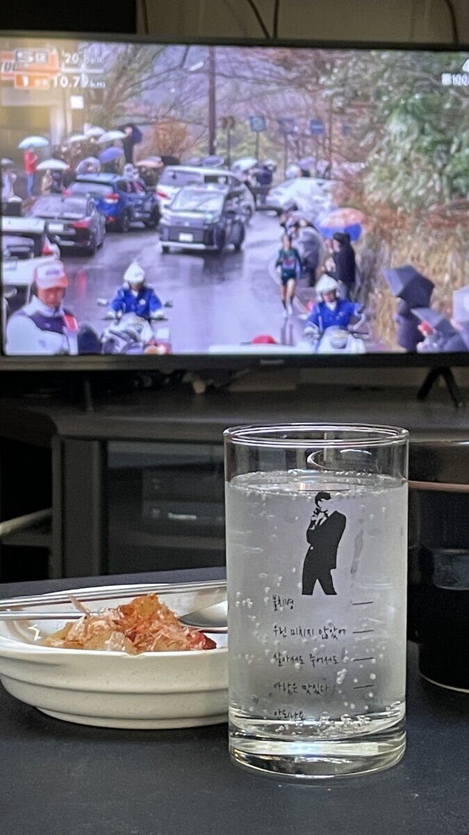 このグラスは、ハングルで酔い度目盛りがついていて便利です笑