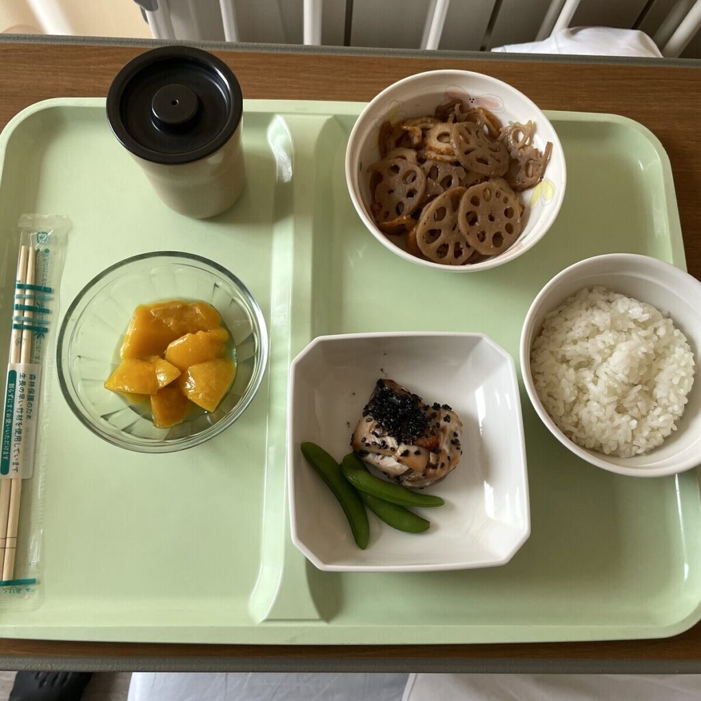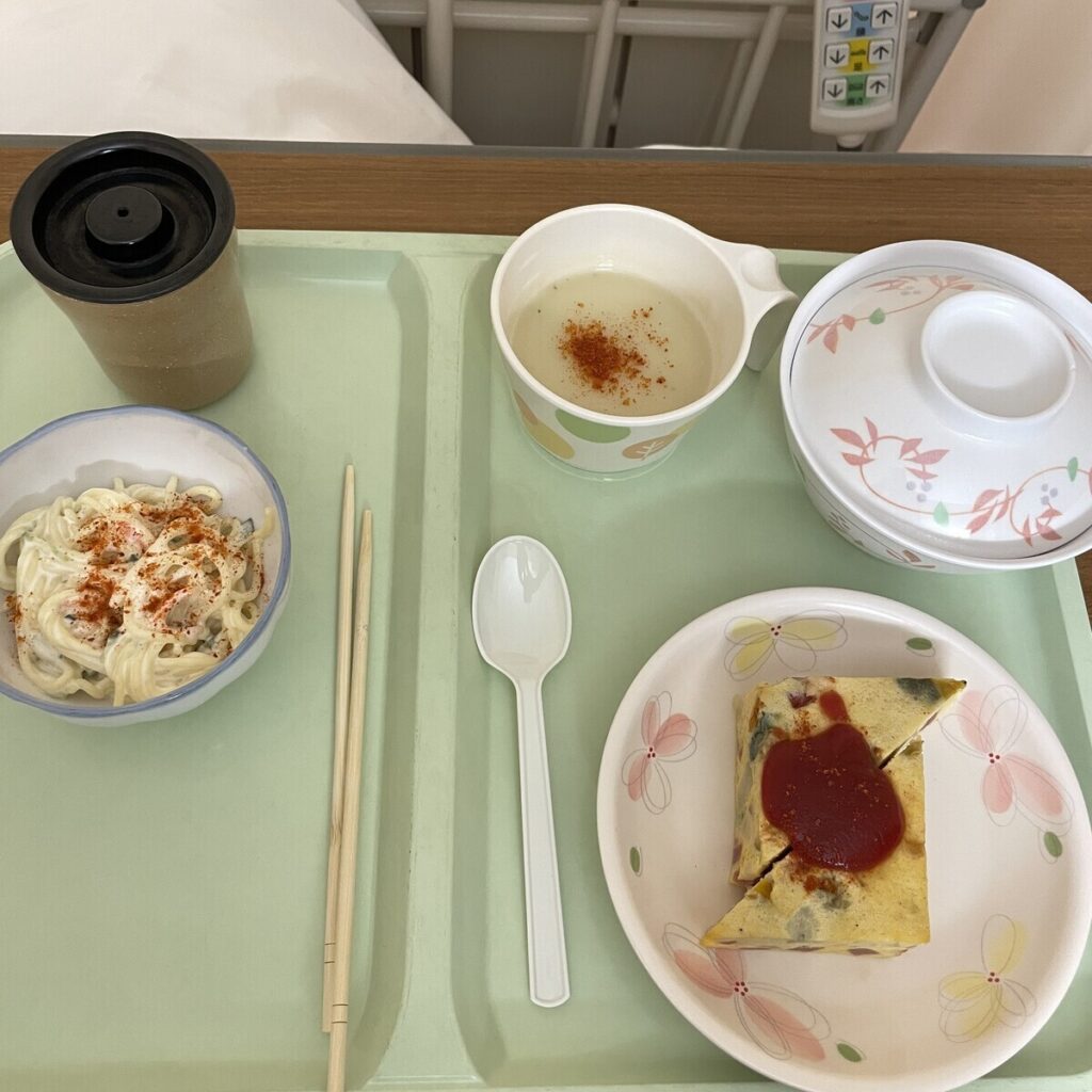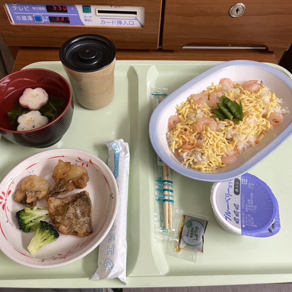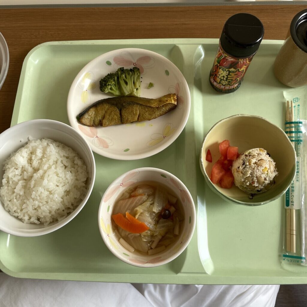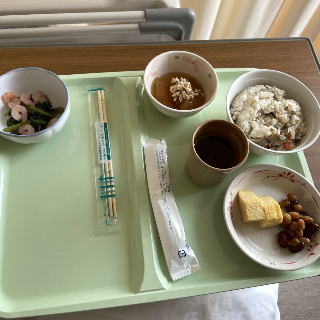 入院の朝は6時に点滴で起こされ、朝食は8時。