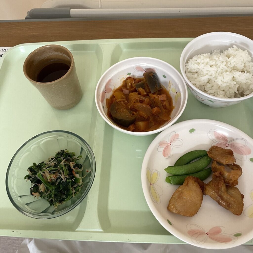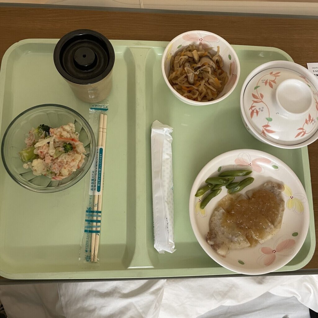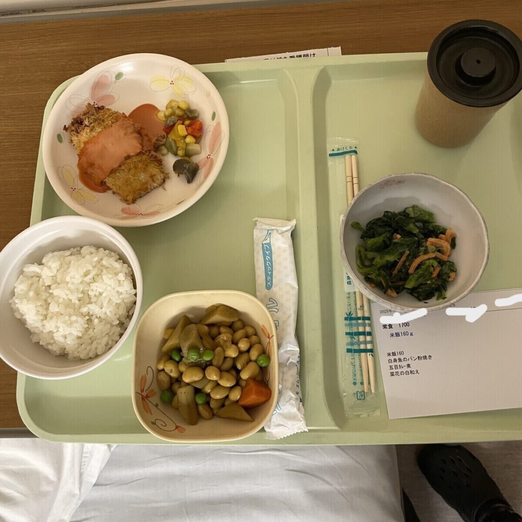 普段、夜は白米は一切食べない。その分おかず多めなのだが、病院はおかずが少ないのでかなり少ない(表現笑)