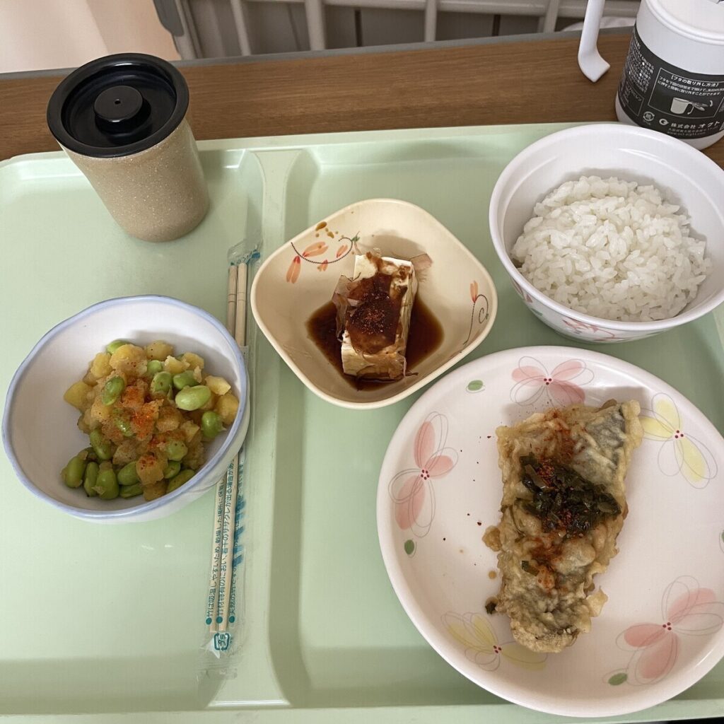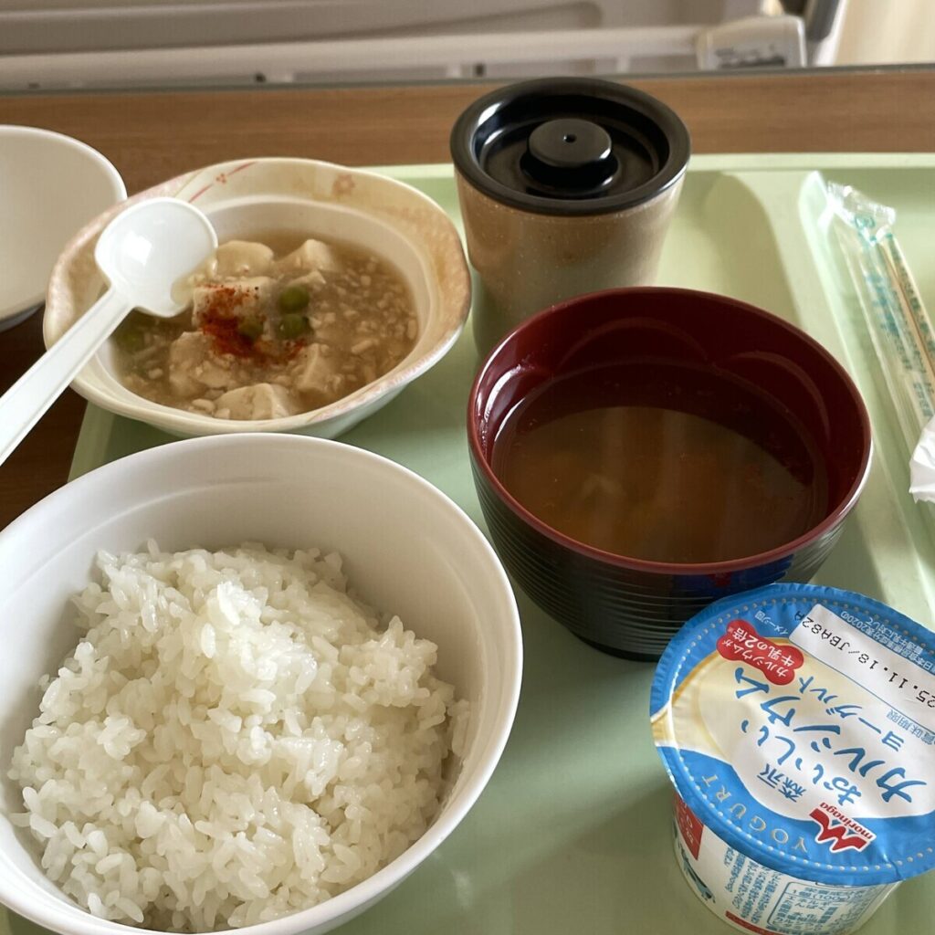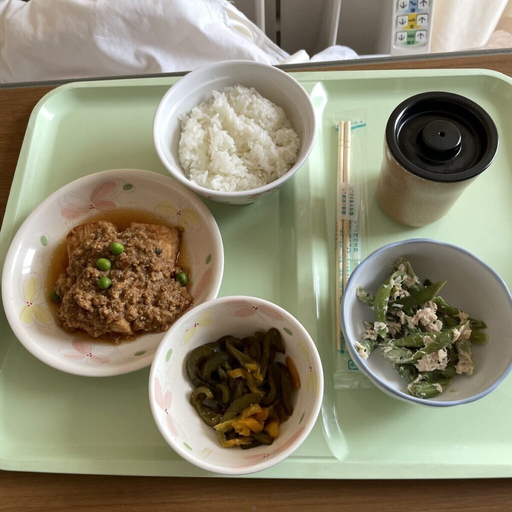 普段、夜は白米は一切食べない。その分おかず多めなのだが、病院はおかずが少ないのでかなり少ない(表現笑)