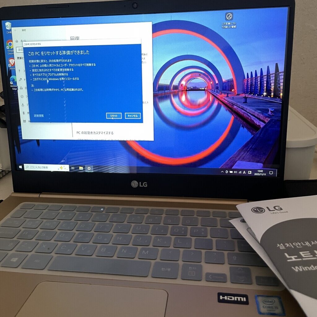 LG-Gramです。ハングル配列とはいえ、Windowsの設定で日本語を選べば全く問題なく、キーボードもJIS配列なので支障なし。
