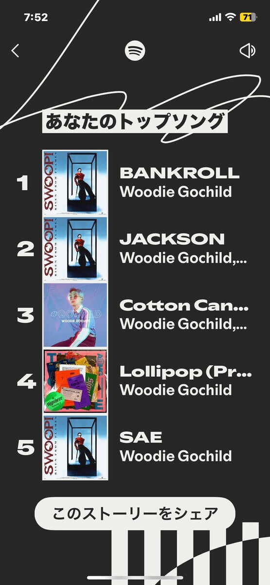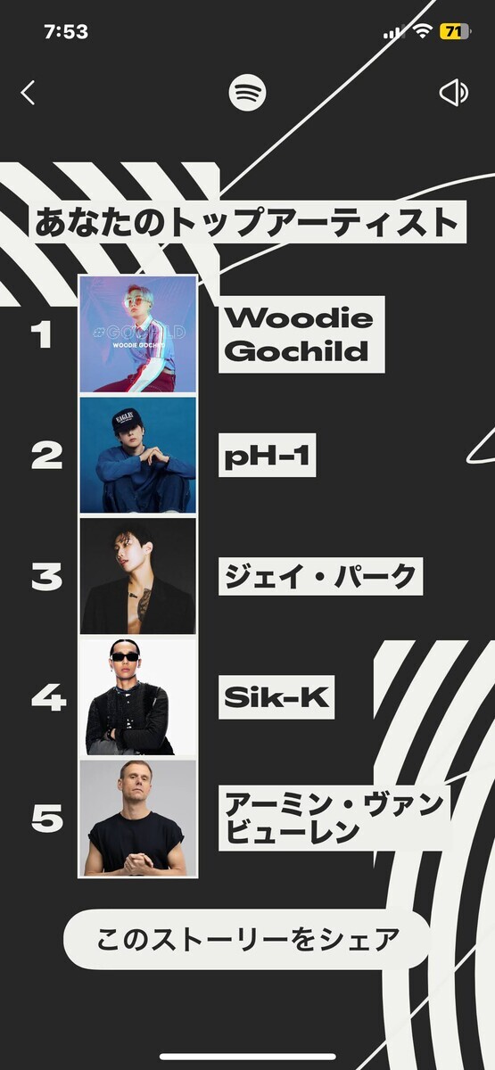 Youtubeミュージックのまとめもあるけど、動画といっしょくたにされているので正確な音楽嗜好で集計サれないから嫌い。