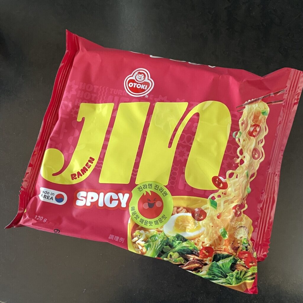 辛ラーメンのほうが好みかな~。辛ラーメンは5分煮てるから、JINラーメンも5分煮たら好みになるかも。