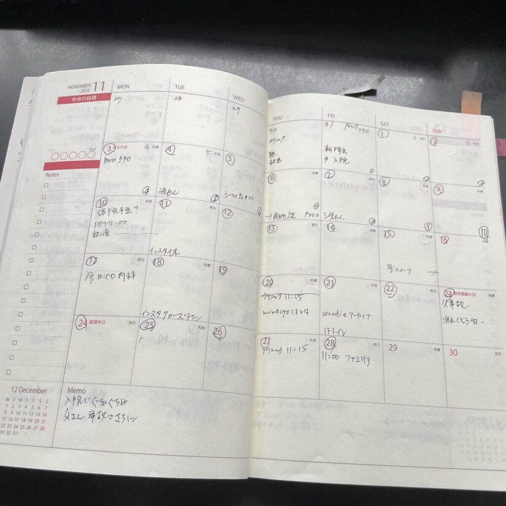 マンスリーはあんまり使わないんだけど、入院のときには日付把握と治療方針の先生との共有に重宝。スマホだと見づらいからね。