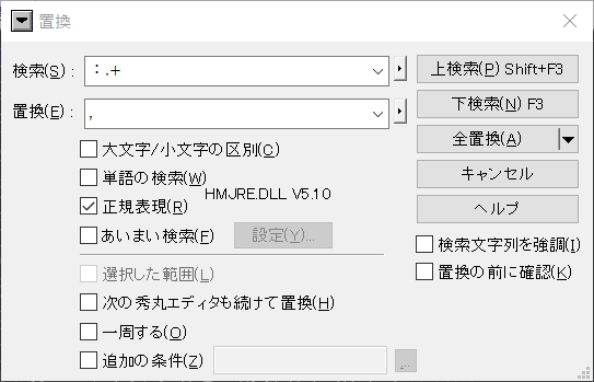 参考:秀丸正規表現 ある文字以下を削除する ありがとうございました